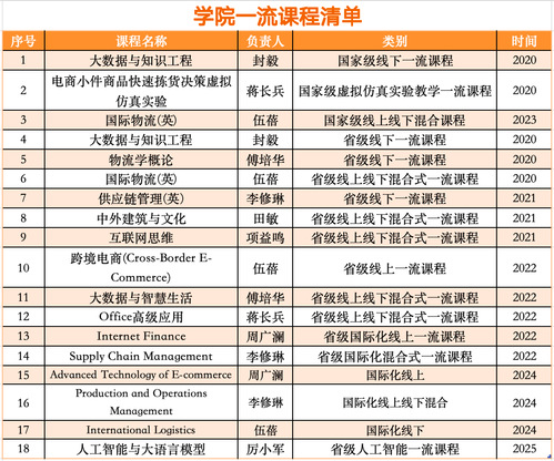 专业建设方面,结合国家和浙江省对跨境电商、产业供应链、商务智能等领域的人才需求,通过“电商—跨境”的场景赋能、“物流—供应链”的链路赋能、“数据—数智”的技术赋能,创设跨境电商与商务智能、智慧供应链、大数据管理创新班,围绕数字素养、数字技能、数智创新的数字能力提质维度,制定了聚焦数字创新驱动、产业特色鲜明,与行业结合紧密的人才培养方案。打造工管融合的学科共同课+专业课体系,综合提升学生的管理创新与工程实践能力。