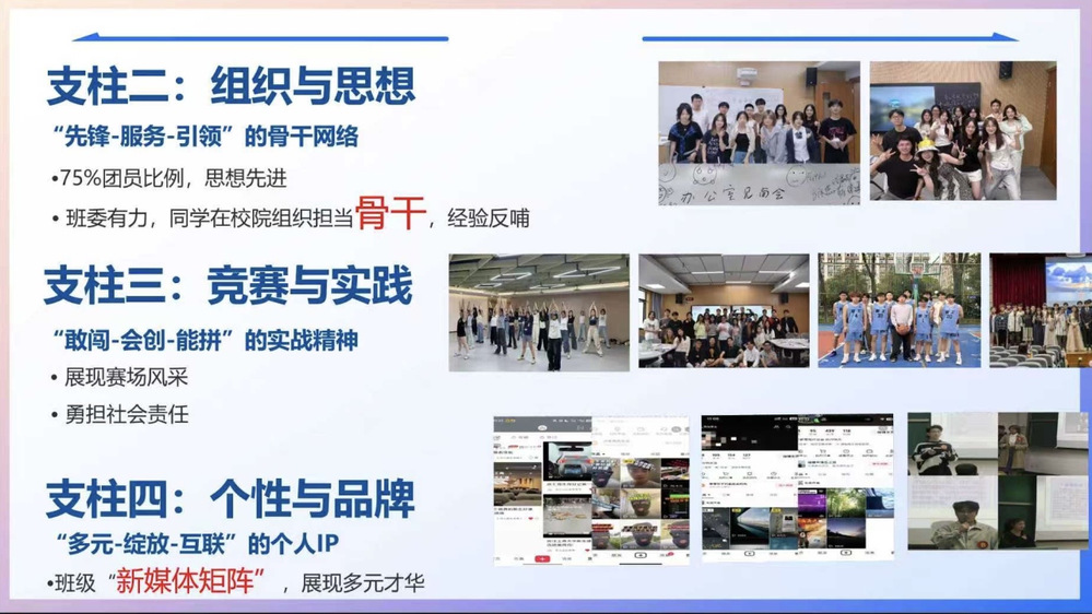 班级推动“多元-绽放-互联”个人IP建设,计划打造新媒体矩阵,展现学子多元才华,塑造集体品牌形象。